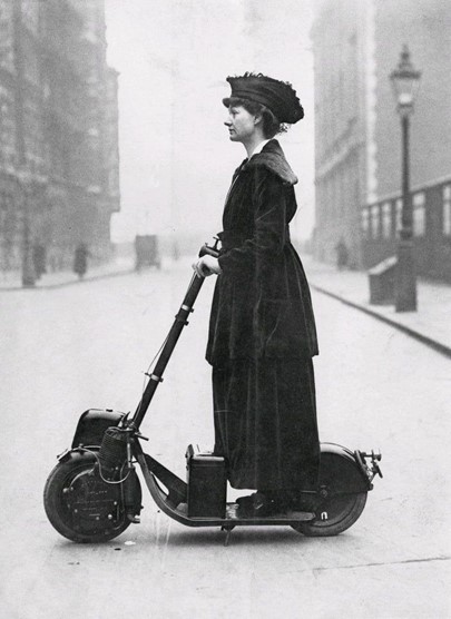 So, motorized scooters are not a recent invention then. Back in 1916, as the First World War raged across the channel, Lady Florence Norman was using her petrol-powered scooter to get to work in London.