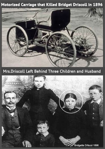 Bridget Driscoll is officially listed as the first person to be killed by a car. The event happened in 1869 (note: before Benz invented the Car) in Britain when the unfortunate victim, aged 44 at the time of the accident, stepped in front of the vehicle travelling at “tremendous” pace and driven by Arthur Edsall. Now, the vehicle was most likely travelling between 4 and 8 miles per hour as in those days, all cars had the speed restricted.