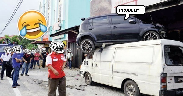 Kalau tengok pada gambar di atas, kita akan tertanya macam mana kereta Myvi tu boleh terbang dengan posisi macam tu? Dah macam dalam filem P.Ramlee, Seniman Bujang Lapok. Masa scene ekzos buloh tu. Ingat tak? Tapi segalanya tidak mustahil untuk Myvi yang memerlukan pecutan yang sangat tinggi untuk terbang setinggi tu. Tak tercapai dek akalmu.