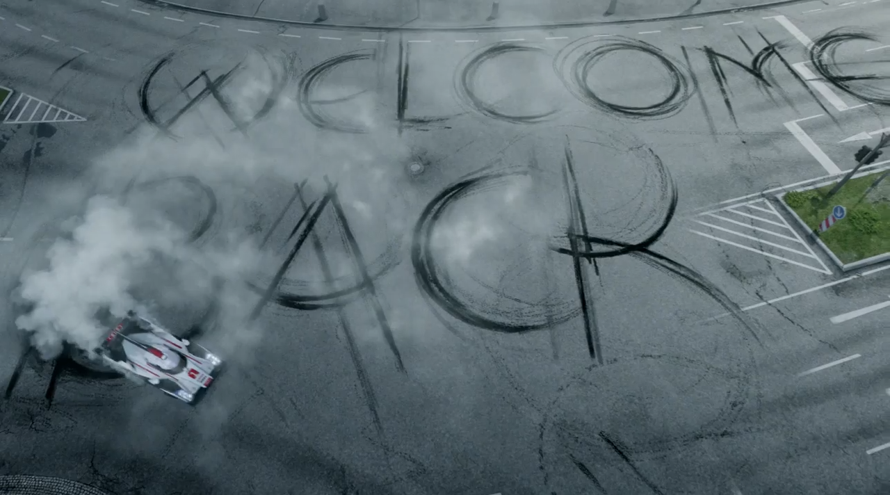 Siblings often share a “love-hate” relationship. They can put you down, tease you, compete with you yet encourage you, all at the same time. This is exactly what Audi has done to Porsche, both subsidiaries of Volkwagen, as the latter returns to Le Mans this weekend. The video clip begins at the Audi HQ in Ingolstadt, where a driver climbs into a Audi R18 E-Tron Quattro racer, and sets off on a journey which destination is at first unbeknownst to the viewer. The Audi machine then enters Stuttgart and arrives at Porsche’s HQ, where it proceeds to burn rubber to imprint a ‘Welcome Back’ message onto the asphalt (makes sky-writing seem passe).
