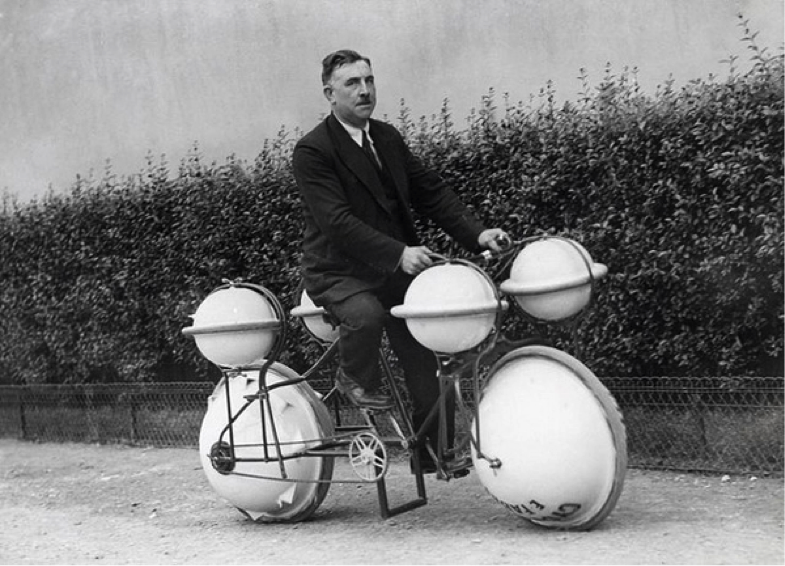 This amphibious bicycle, besides having an odd look about it, shares the same function as some vehicles in use today. Singapore uses amphibious buses to carry tourists around the city, on land and on lake.