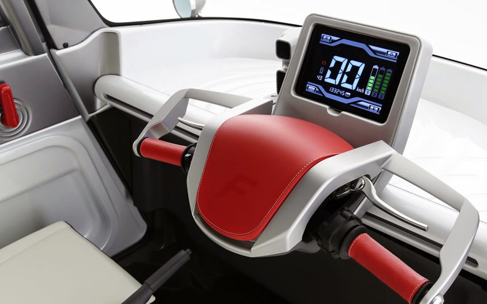 “Its amphibious ability is only there for emergency situations, which could mean the difference between life and death”, Hideo said in a recent interview, further explaining that maintenance is required after use in floods and any water submersion. The vehicle is controlled more like the familiar Thai Tut-Tut’s, with a motorbike-style central handle bar with all of the controls on it. Propulsion for both land and flood comes from two front in-hub 5kW electric motors mounted in the front wheels, which Hideo maintains is preferred as the regenerative braking system would cause the wheels to lock up and skid in wet conditions if they had been rear mounted. Hideo does admit though that whilst this gives the vehicle greater ability as a town car, it has made the vehicle more expensive than he had originally envisaged.