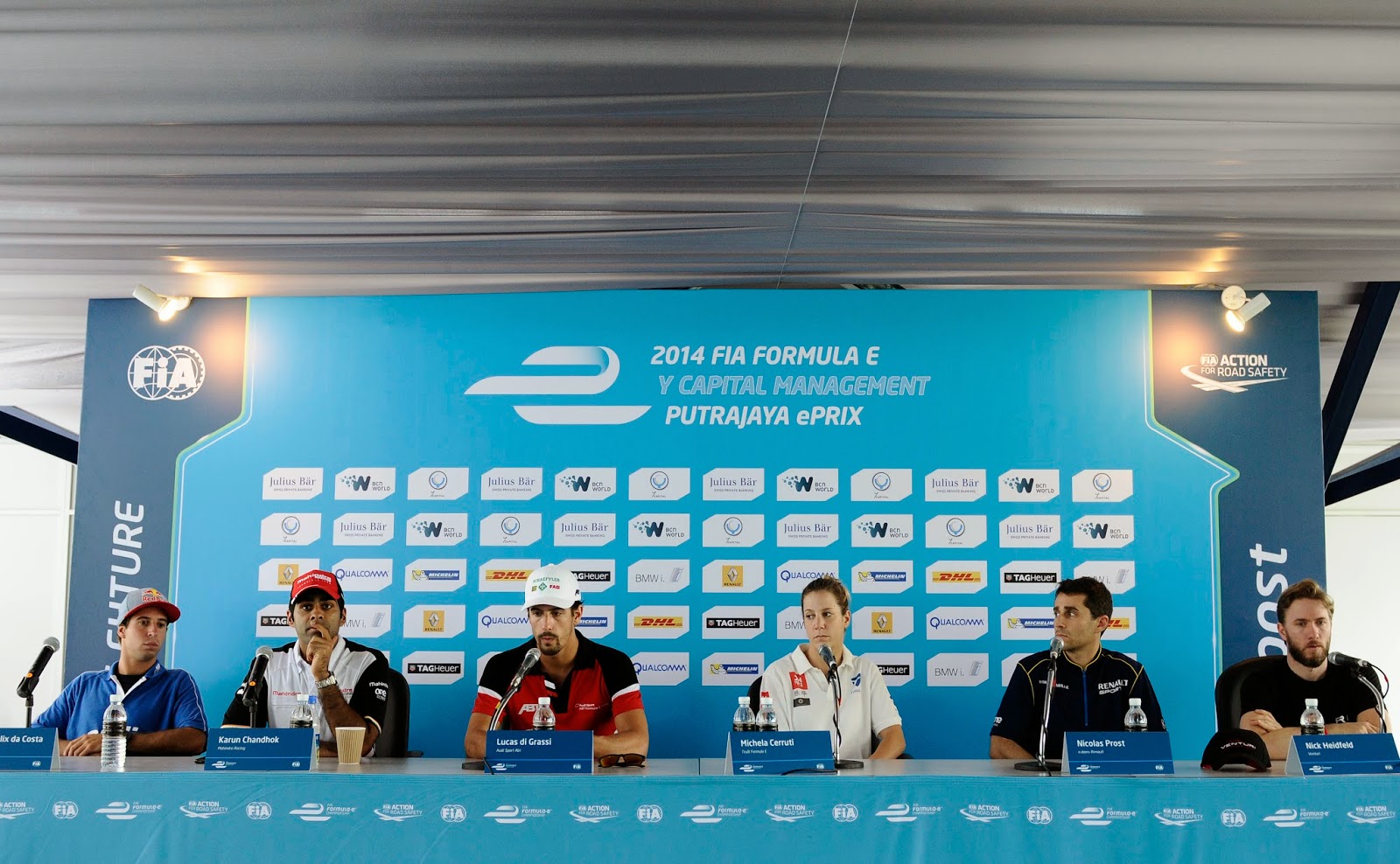 “Driving in dry weather with the car is difficult enough,” said Lucas de Grassi, winner of the Beijing race, during the pre-race media conference. The specially designed all-weather tyres by Michelin will be put through trial by fire (or is that flood) if the heavens decides to open the floodgates during the race tomorrow afternoon. The Putrajaya track is decidedly more challenging than the Beijing one, with more sharp corners and painted pavements, which might affect the cars especially when wet.