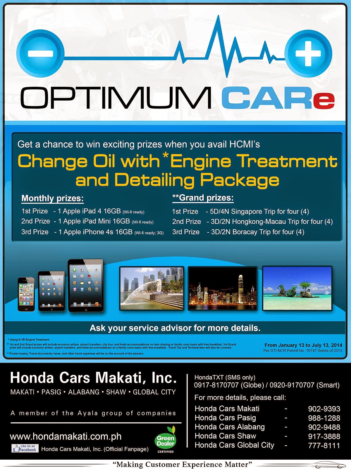 Honda service clients are looking forward eagerly to the Grand Draw as the First Prize is a 5 Days & 4 Nights trip to Singapore for a family of four, which includes hotel accomondation, city tour, meals and airport transfer. The Second Prize is a 3 Days & 2 Nights trip to Hong Kong-Macau while Third Prize wins a 3 Days & 2 Nights to Borocay Island.