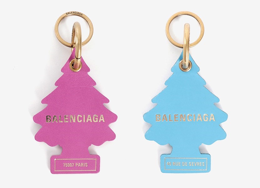 Now, they are making headlines again as they are being sued by Car-Freshner Corporation. The air freshener company claims that Balenciaga copied its famous Little Trees Air Freshener that hangs from many a car’s rearview mirror, and reproducing the pine tree outline in a series of leather keychains: