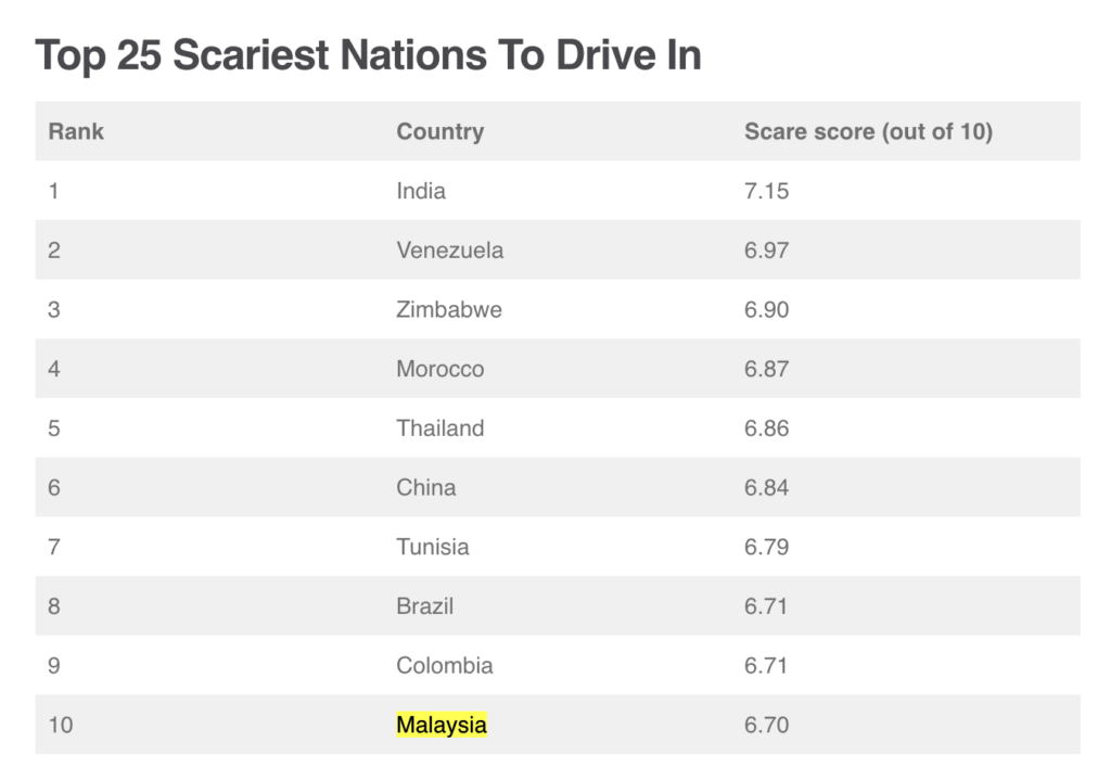 Malaysia Ranked 10th On A List Of The Most Scary Nations To Drive In
