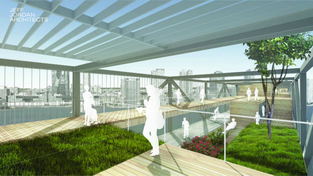 The visionary pair imagined more than just a plain ol’ pedestrian bridge. Jordan has designed paths within a box-truss structure, lined with seating areas, landscaped gardens, eateries and shops. It is as much a destination as a means of getting to the other side. The bridge cum park would also attract tourists as it would offer magnificent views of the Manhattan skyline.