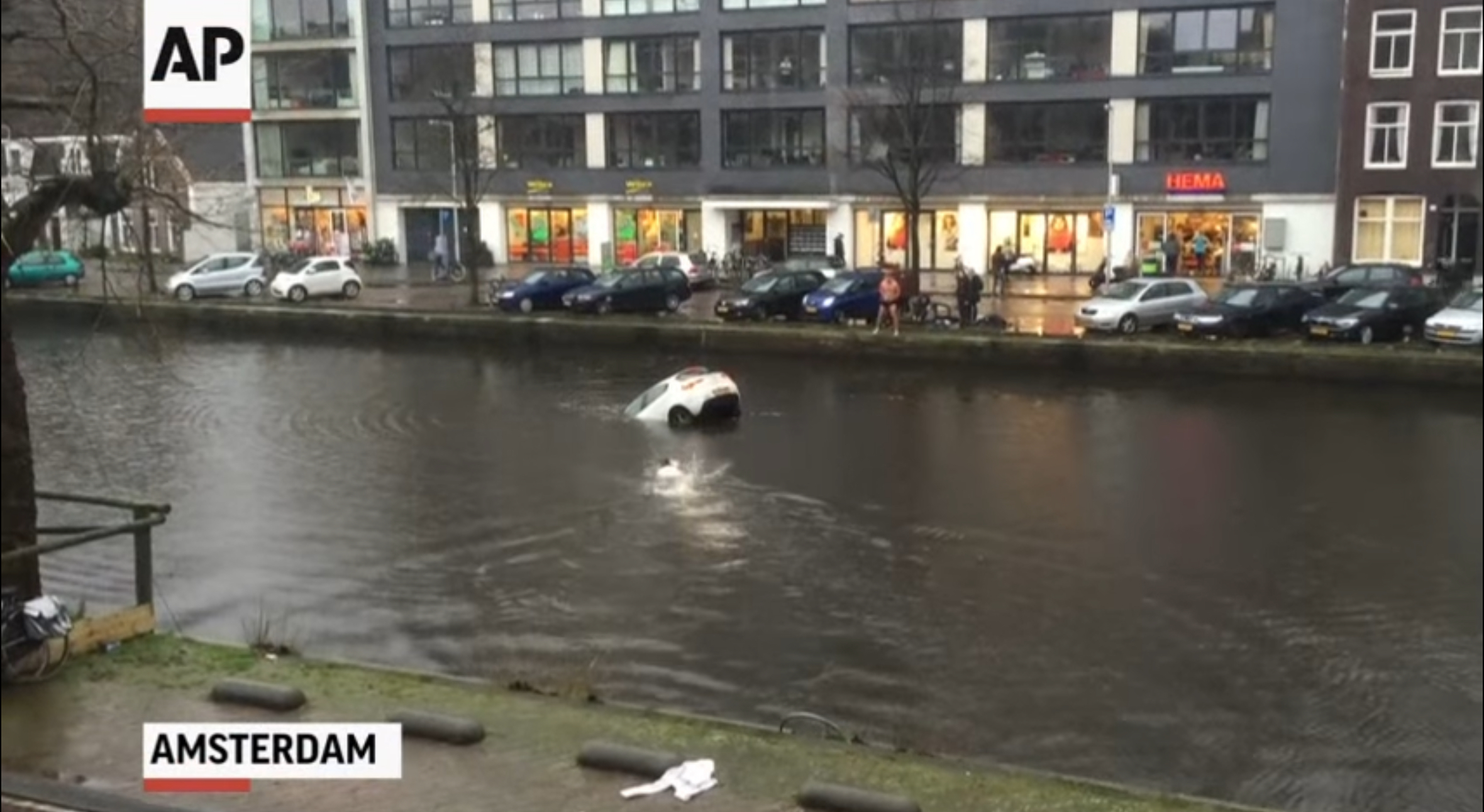 It shows four passers-by jumping into the icy cold waters of the Schinkel River in Amsterdam to save a woman and her toddler from a sinking car. So, if you’re wondering (like we did) what a car is doing in the middle of the canal, it is believed that the woman had parked the car but when she stepped out, the vehicle began to roll forward with her child still inside. She couldn’t free the kid in time and the car plummeted into the water with both of them inside.