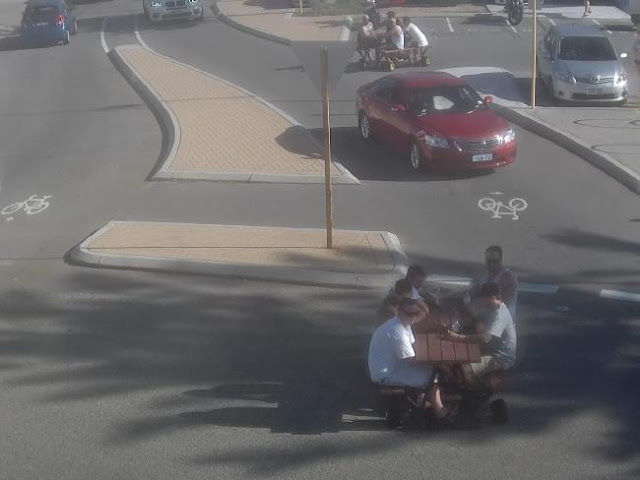 A bunch of blokes are being hunted by the Western Australia Police for driving around Perth on picnic tables. One of the guys had transformed the ordinary tables into motorised vehicles.
