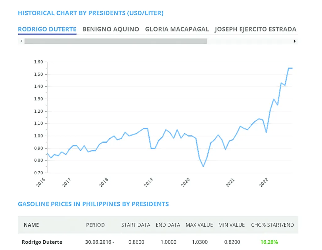 The graph below, on the other hand, shows the trend of the fuel price under Mr. Rodrigo Duterte’s administration: