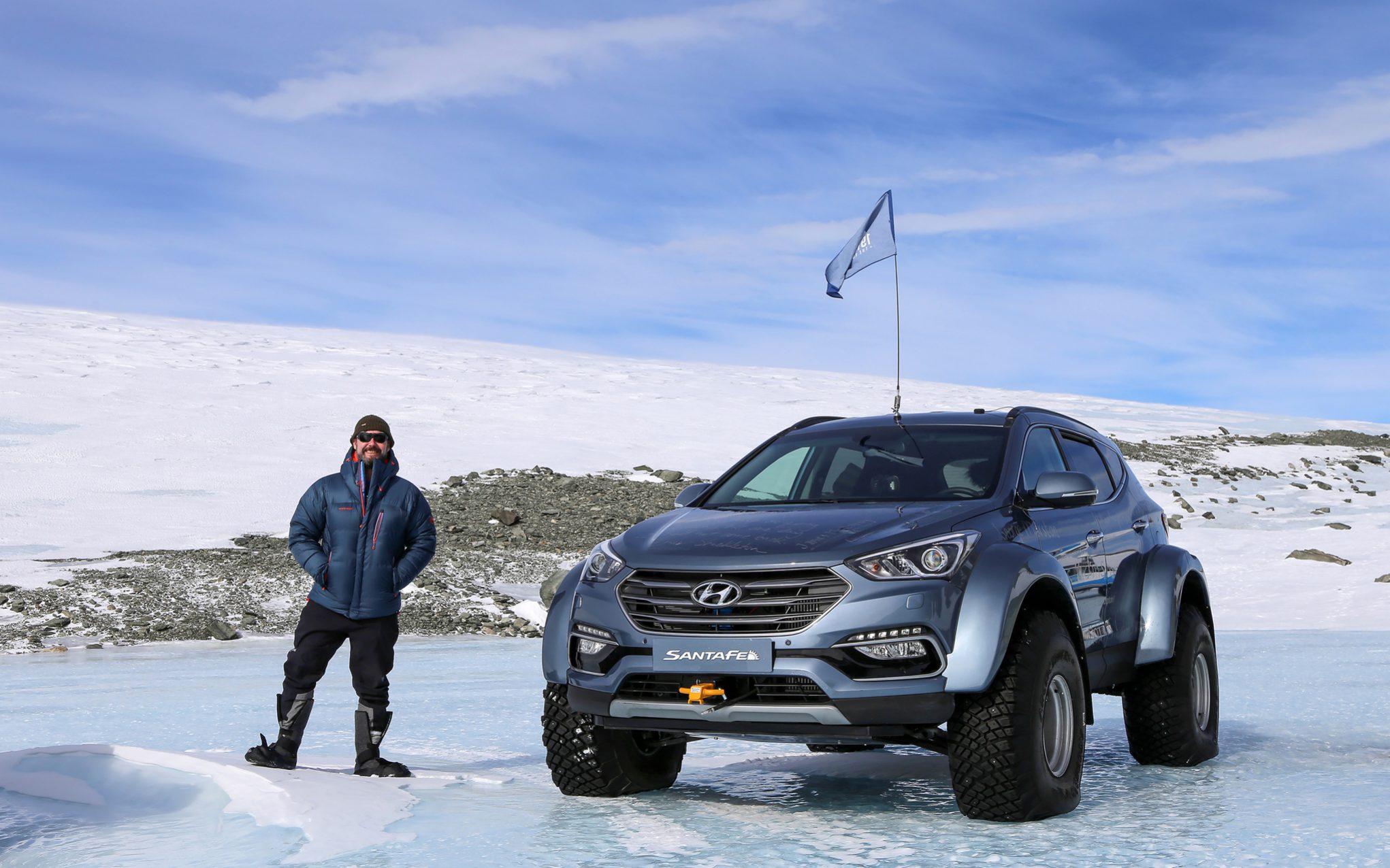 Now, his great grandson, Patrick Bergal, has managed to achieve one of the things that Ernest couldn’t do and that is to cross the Antarctic from one ocean to the other. To do this, he teamed up with Hyundai, who supplied him a slightly modified Santa Fe sport for the job. The somewhat wicked looking soft-roader was fitted with a higher ground clearance suspension, big balloon tyres and a 65 gallon fuel tank with fuel heater. But other than that, it was essentially a standard passenger car.
