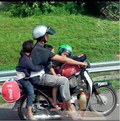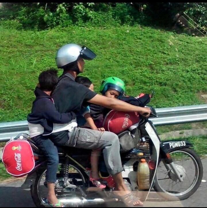 Malaysia, like a lot of other developing countries, has a large proportion of its population that relies on the motorbike as its sole mode of transportation, and has lax enforcement of basic rules such as possession of a license, insurance, helmets and over-loading.