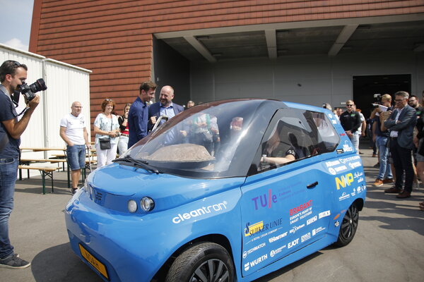 The students claim that this electric car will reach an efficiency of 97% during acceleration and even a 100% efficiency at constant speeds.