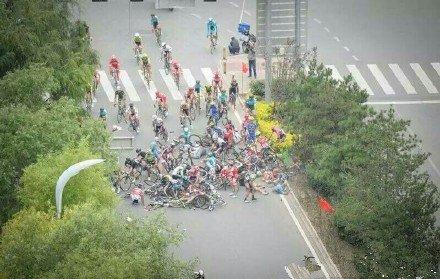 Just as the first stage of the Tour of Qinghai Lake was approaching the finish line in Xinging, they met with the somewhat unexpected moving hazard, as can be seen by the footage below; the leaders managed to avoid him but the rest of the peloton slammed into him, causing a monumental pile-up as rider after rider fell like dominos. Six of the riders were reported to be hospitalised with their injuries. The footage also seems to show the pedestrian lying motionless as the result of the impact.