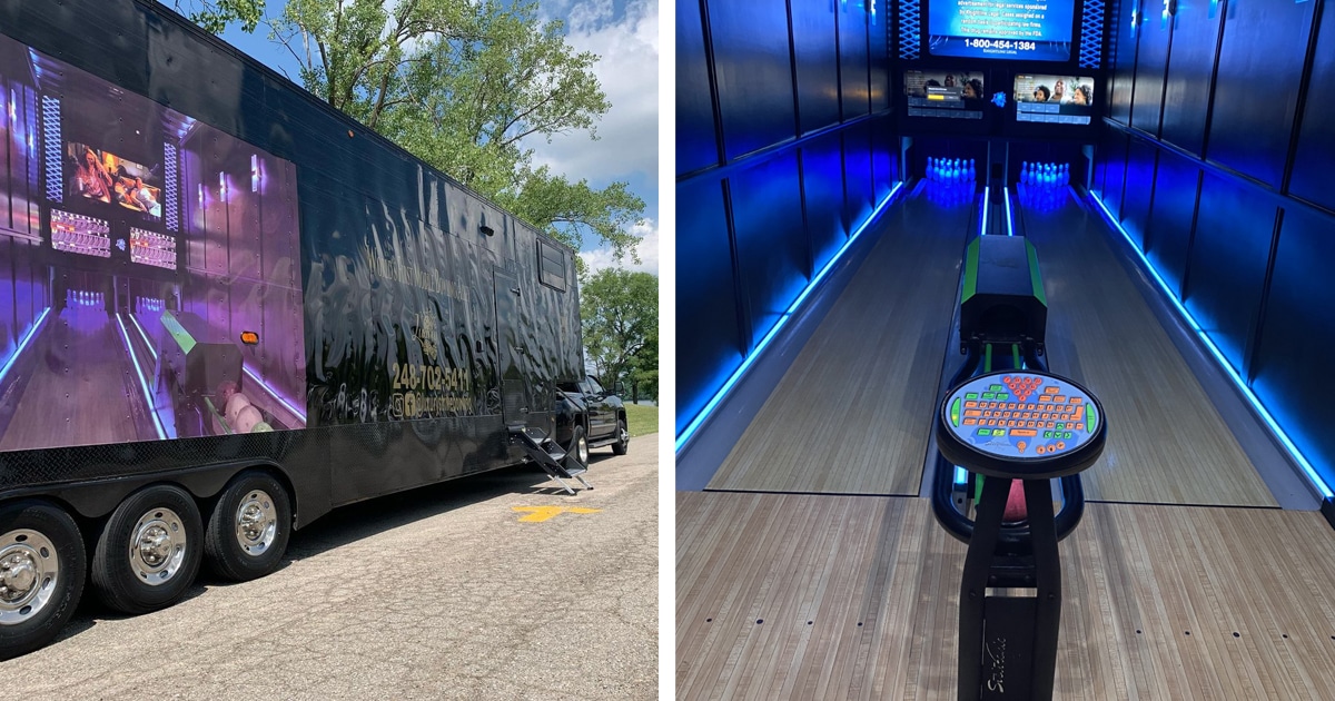 But if you miss the anticipation as the bowling ball rolls down the lane and the sound of it striking the pins and you happen to live in the vicinity of Southfield, Michigan, an entrepreneur from thereabouts now offers a private bowling alley that will roll up to your doorstep.