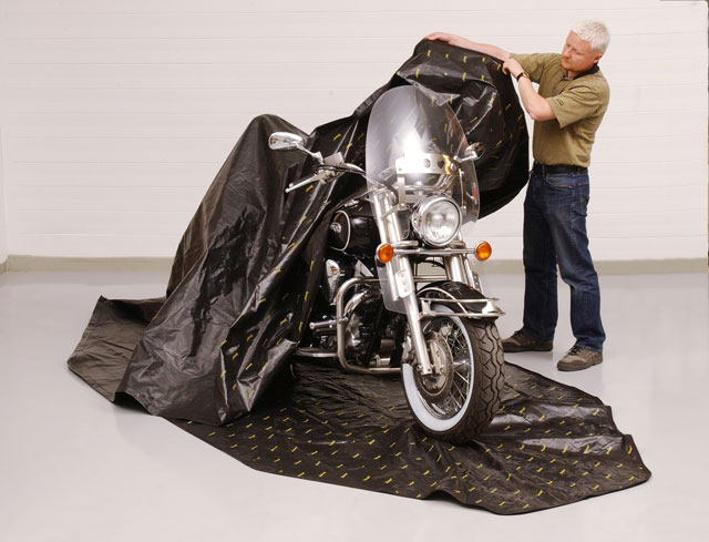Best to cover the bike and keep dust off. You can remove the cover to inspect when you start the engine.